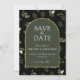 Machen Sie eine Aussage mit dieser atemberaubenden Moody Watercolor Modern Rustic Elegant Wedding Save the Date Karte, die auf die Einzigartigkeit Ihrer Liebe Geschichte, die die Eleganz der Grün mit einer Touch von rustikalen Einfachheit. Das moody-elegante Design mit botanischen Elementen auf einem auffallenden schwarzen Hintergrund fügt Ihrer Hochzeitsankündigung eine Touch von Drama und Glamour hinzu. Das trendige Bogen-Motiv bringt einen eleganten Flair mit sich und schafft so ein optisch atemberaubendes Stück, das sich durch seine Architektur auszeichnet. Die Kombination aus botanischen Akzenten und einem eleganten Design macht es zu einer perfekten Wahl für Paare, die eine elegante und unverwechselbare Art und Weise suchen, ihre kommenden Neuheiten bekannt zu geben. Wählen Sie diese moderne und exquisite Save the Date-Karte, um einen unvergesslichen ersten Eindruck für Ihre Hochzeit zu machen.