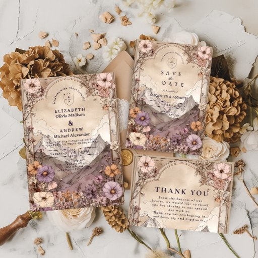 Moody Wildflower Mountain Wedding Einladung