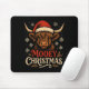 Mooey Christmas Highland Cow Funny Santa Hat Desig Mousepad