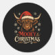Mooey Christmas Highland Cow Funny Santa Hat Desig Runder Aufkleber