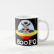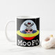 MooFO UFO-Tasse ist eine Kaffeetasse, die eine Kuh in einem FliegenSaucer kennzeichnet.