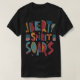 Der T - Shirt enthält den Satz "Moolah macht Mirth" in einem lustigen, farbenfrohen Design. Jedes Wort könnte eine andere lebendige Farbe haben, oder die Buchstaben selbst könnten mit bunten Mustern und Texturen gestaltet werden. Das Gesamtgefühl sollte leicht und skurril sein und die Vorstellung widerspiegeln, dass Geld Freude bringt.