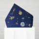 Moon Adventure Tissue - Illustrationen im Cartoon von Dingen, die man im Weltraum finden könnte - Raketenschiffe, UFOs, Satelliten, Sterne, Planeten, Mond und Erde. Sehen Sie, wie die Augen Ihres kleinen Weltraumforschers aufleuchten, wenn sie ihr Geschenk in diesem bezaubernden Moon Adventure Tissue Papier verpackt sehen.