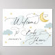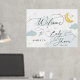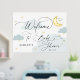Herzlich willkommen in Ihrer Babydusche mit diesem eleganten und stilvollen Willkommensschild. Mit elegantem Kalligraphieskript gepaart mit von Hand gezeichnet Sternen, Wolken und einem halbmondförmigen Mond in Folie. Ideal für Mond- und Sternenduschen im Trend wie "über den Mond", "funkle twinkle littler star" und "geliebt zum Mond und zurück". Besuchen Sie unbedingt den Shop und die Sammlung, um mehr zu sehen.