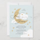 Moon and Stars Blue Elegantes Script Baby Duwer Einladung