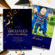 Mond und Stars Einladung zum ersten Geburtstag. Königlich blau, schwarz und gold. Ein perfekter kosmischer Mond und Stars Geburtstagsparty. Für eine erweiterte Anpassung dieses Designs, wählen Sie einfach die Schaltfläche "Anpassen" oben! Auch als Download für Ihre Bequemlichkeit.