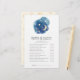Dieses geschlechtsneutrale Spiel "Mama oder Papa" mit Mond und Sternen ist perfekt für eine einfache Babydusche. Das moderne skurrile Design besticht durch eine marineblau-blaue Wolkenform mit einem gelben Viertelmond und Sternen. Personalisieren Sie die Rückseite der Karte mit dem Namen der Mutter-zu-sein-und das Duschdatum. Sie können die Fragen des Spiels personalisieren, indem Sie auf den Button "Anpassen" klicken.