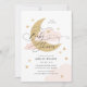 Moon and Stars Matte Pinks Script Baby Dusche Einladung