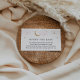 Eine Reservierungskarte für Babydusche. Mit Monden und Sternen und Gedicht: "EINE KLEINE ANFRAGE, HOFFEN WIR NICHT ZU SCHWIERIG BITTE BRINGEN EIN BUCH ANSTATT EINER KARTE, DIE SIE DAS BUCH CHERISIEREN, GUT LIEBT ODER NEUE BITTE UNTERZEICHNEN SIE DIE INNEN MIT EINER BOTSCHAFT VON IHNEN!"
