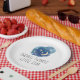 Dieser Mond und die Sterne sind funkelnde, kleine Sternenpapiertafel, die sich perfekt für eine einfache Babydusche eignet. Das moderne skurrile Design besticht durch eine marineblau-blaue Wolkenform mit einem gelben Viertelmond und Sternen.