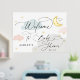 Herzlich willkommen in Ihrer Babydusche mit diesem eleganten und stilvollen Willkommensschild. Mit elegantem Kalligraphieskript gepaart mit von Hand gezeichnet Sternen, Wolken und einem halbmondförmigen Mond in Folie. Ideal für Mond- und Sternenduschen im Trend wie "über den Mond", "funkle twinkle littler star" und "geliebt zum Mond und zurück". Besuchen Sie unbedingt den Shop und die Sammlung, um mehr zu sehen.