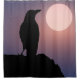 Einfaches schwarzes Rasen- und Mondbad Duschvorhang. Das totem Vogeltier vieler. Schwarze Silhouette eines Rabe gegen den blauen Himmel, Sterne und hellen Mond. Ordnen Sie Grafiken neu an, spielen Sie farbig, um sie Ihrer Wohngestaltung anzupassen. Ein tolles Bild eines Vogels für diejenigen, die Raben, Krähen und Vögel Liebe haben.