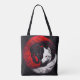 Ein überrealistisches Design, das einen rot-weißen Yin-Yang-Wolf mit dem dynamischen Gleichgewicht und den intensiven Details des mächtigen Blicks des Wolfs zeigt.