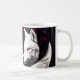 Ein überrealistisches Design, das einen rot-weißen Yin-Yang-Wolf mit dem dynamischen Gleichgewicht und den intensiven Details des mächtigen Blicks des Wolfs zeigt.