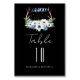 Moon Crystals Blume Boho Metaphysische Hochzeit Tischnummer schwarzen Hintergrund. Dieses Set der Hochzeitsfeier in Boho besticht durch seine Aquarellhalbierung und Vollmondphasen mit Blumen und Blumen, Kristallkernpunkten, Grünpflanzen und Antlers. Eine ideale Wahl für eine mystische oder metaphysische spirituelle Gewerkschaft, Handfasten oder Hochzeit. Hintergrundfarben und Schriftart können leicht an Ihre Bedürfnisse angepasst werden.