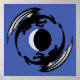 Zwei fliegende schwarze Drachen umkreisen einen Halbmond in diesem Fantasiedesign von Richard H. Fay.