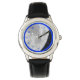 Mond, kid's rostfreie Stahluhr mit schwarzem Lederband und blauen Zahlen