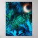 Moon Night Tropical Dschungel Blätter Silver Blue Poster