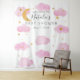Moon & Stars personalizado rosa Baby Shower texto Wandteppich