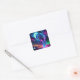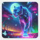 Moon und Panther Holographic Neon farbenfroh | Quadratischer Aufkleber