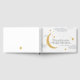This soft, celestial-themed guest book features twinkling gold stars, a crescent moon, gentle clouds, and a delicate heart-rain design in a calming palette of gray, and gold. Perfect for baby showers, it invites guests to leave a heartfelt message, creating a keepsake you’ll cherish for years to come. Elegant and whimsical, it’s a beautiful way to capture loving memories. Original artwork by Sarah Trett for www.mylittleeden.com