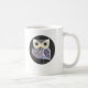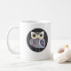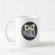 Abstrakte Eulengraphik auf schwarzem Kreishintergrund