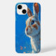 Gentle Rabbit in an Enchanting Anime-Style Blue Fantasy Scene iPhone Case