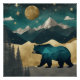 Dieses Bild zeigt eine schöne Darstellung eines Bären, der nachts durch die Berge spaziert. Der Bär ist von Bäumen und Bergen umgeben, und der Mond scheint hell am Himmel. Das Gemälde fügt jeder Kollektion eine Touch von Launen und Magie hinzu.
