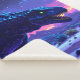 A glowing blue dinosaur roams under a bright full moon and neon sky. The mix of cosmic tones and prehistoric power creates a bold, futuristic scene.
