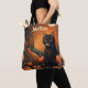 Eine schwarze schwarze Katze mit leuchtenden orangefarbenen Augen sitzt inmitten eines Pfeils aus Kürbis, die in das silberne Licht eines Vollmondes gebadet werden. Interessanterweise sind Kürbisse technisch fruchtig, da sie Samen enthalten und sich aus der Blume der Pflanze entwickeln. Dieses bezaubernde Design vereint das Wesen einer ruhigen Halloween-Nacht, in der Magie und Natur miteinander verwoben sind.