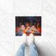 Eine Gruppe von bezaubernden Geistern, die auf dem Boden zusammensitzen und die unheimliche Geschichten über den Horror teilen. Ihre spielerischen Ausdrücke und die unheimliche Atmosphäre schaffen eine lustige, leichte Halloween-Szene.