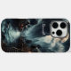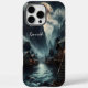 Ein ruhiges Dorf, eingebettet zwischen hohen Bergen, beleuchtet von Vollmond. Rustikale Holzhäuser stehen auf Pfählen über einem überwältigenden Fluss.