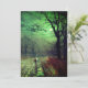 Karte mit John Atkinson Grimshaw's Gemälde A Moonlit Abend (1880). Ein heimlicher Mond füllt den Nachthimmel des Viktorianischen Englands, als eine Frau in einer von Bäumen gesäumten Straße steht. Vor ihr ist ein beleuchtetes Gebäude. Ein großartiges Geschenk für Liebhaber der Romantik und des Viktorianischen Englands.
