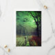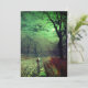 Karte mit John Atkinson Grimshaw's Gemälde A Moonlit Abend (1880). Ein heimlicher Mond füllt den Nachthimmel des Viktorianischen Englands, als eine Frau in einer von Bäumen gesäumten Straße steht. Vor ihr ist ein beleuchtetes Gebäude. Ein großartiges Geschenk für Liebhaber der Romantik und des Viktorianischen Englands.