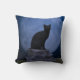 Eine ruhige schwarze Katze blickt auf den Himmel in einer klaren Nacht unter Vollmond.
