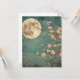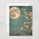 Eine zarte Kirschblüte schmückt die Nacht unter einem hellen Vollmond, Set vor einem rustikalen blauen Hintergrund. Diese Grußkarte vereint die friedliche Schönheit der Natur und verbindet Vintagen Charme mit himmlischer Eleganz. Ideal für Liebhaber der Boho-Ästhetik, der japanisch inspirierten Kunst und der Mondlichter Blumenszenen.