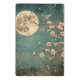 Eine zarte Kirschblüte schmückt die Nacht unter einem hellen Vollmond, Set vor einem rustikalen blauen Hintergrund. Diese Zwischenablage zeigt die friedliche Schönheit der Natur und verbindet Vintagen Charme mit himmlischer Eleganz. Ideal für Liebhaber der Boho-Ästhetik, der japanisch inspirierten Kunst und der Mondlichter Blumenszenen.