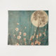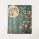 Eine zarte Kirschblüte schmückt die Nacht unter einem hellen Vollmond, Set vor einem rustikalen blauen Hintergrund. Dieser Wandteppich spiegelt die friedliche Schönheit der Natur wider und verbindet Vintagen Charme mit himmlischer Eleganz. Ideal für Liebhaber der Boho-Ästhetik, der japanisch inspirierten Kunst und der Mondlichter Blumenszenen.