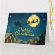 Capture the enchantment of Christmas Eve with this festive greeting card featuring Santa Claus and his reindeer silhouetted against a glowing full moon. Below, snow-covered rooftops and a twinkling Christmas tree set the scene for a night of wonder. With elegant “Merry Christmas” script and a starry sky, this design brings timeless charm and joyful spirit to your holiday messages.