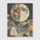 Treten Sie ein in eine Welt des Vintagen Charmes mit diesem ruhigen Design, das eine Frau gegen das leuchtende Glühen eines Halbmonds oder Vollmonds zeigt. Die sanften Farbtöne und das nostalgische Gefühl erinnern an zeitlose Schönheit und stille Introspektion, was es zu einem perfekten Stück für Liebhaber der klassischen Kunst und der himmlisch inspirierten Designs macht.