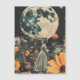 Treten Sie ein in eine Welt des Vintagen Charmes mit diesem ruhigen Design, das eine Frau gegen das leuchtende Glühen eines Halbmonds oder Vollmonds zeigt. Die sanften Farbtöne und das nostalgische Gefühl erinnern an zeitlose Schönheit und stille Introspektion, was es zu einem perfekten Stück für Liebhaber der klassischen Kunst und der himmlisch inspirierten Designs macht.