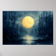 Moonlit Forest Reflection - Abstrakt Blue & Gold Poster