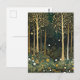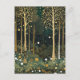 Eine fantastische und bezaubernde Waldszene mit einer tiefen grünen und goldenen Palette. Große, stilisierte Bäume mit goldenen Stämmen und Ästen reichen in Richtung eines dunklen Himmels, ihre Gliedmaßen mit leuchtenden, kugelförmigen Früchten oder Blüten verziert. Der Vordergrund ist ein dichtes, detailgetreues Tapeziermuster, das mit stilisierten Blume und Pflanze in Grün-, Creme- und Goldtönen gefüllt ist. Leuchtende Lichtorben schweben durch die Luft und die Erholung auf dem Boden und schaffen eine magische Atmosphäre, die an ein traumhaftes Waldland erinnert. Die Gesamtkomposition ist sehr dekorativ, mit einer flachen Perspektive und komplizierten Mustern, die die Leinwand füllen.