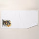 Moonlit Manor - Halloween Gruß in Shadow & Glow Bath Handtuch Set Ein Spuk Haus Silhouette erhebt sich gegen einen leuchtend orangen Mond, umgeben von wirbelnden Fledermäusen und kahlen Ästen. Die Phrase "Happy Halloween" erscheint in einem stilisierten Drehbuch in der Nähe der Ecke und fügt der unheimlichen Szene eine festliche Touch hinzu. Mit seinem reichen Kontrast und seinen ikonischen Bildern zaubert dieses Design den Nervenkitzel der Halloween-Nacht, in der Schatten tanzen, Spirituosen rühren und der Mond alles überwacht.