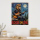 Dieses beeindruckende Gemälde vereint einen majestätischen Löwen mit einer Sonnenbrille und einer Lederjacke, der seine "mondbeleuchtete Melodie" auf einer E-Gitarre von einem alten Holzdach auf dem Dach ausstrahlt. Ein leuchtender Vollmond dominiert den strukturierten Nachthimmel, in der Ferne stehen dunkle Kiefernbäume. Der Einsatz von kühnen, strukturierten Pinselstrichen betont die Rohenergie der Szene und die "Rock or Die"-Einstellung, die dieses unerwartete Konzert zum Leben erweckt.