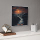 Tauchen Sie ein in die kühne Atmosphäre des "Moonlit Menace: Der Spuk Schwarzwald in der Dämmerung", denn diese Wandkunst bringt Sie in ein spannendes Reich. Der orangefarbene Dunst wirft ein ätherisches Glühen auf und beleuchtet die vorherrschende Silhouette des unheimlichen Schwarzwaldes, wo unsichtbare Schrecken lauern und der Schleier zwischen den Welten dünn wird.