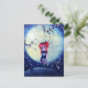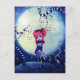 "Moonlit Misfit" Ein gotisches, puppenhaftes Mädchen mit feurigen roten Ferkeln steht auf einem surrealen Hügel unter einem glühenden Vollmond. Sie ist in einem dunklen Outfit verkleidet, mit Möwen geschmückt und an einem gesteppten Hasen befestigt, umgeben von skurrilen, schwarzweiß gestreiften Tentakeln, die durch einen sterngesprenkelten Nachthimmel Drehung finden.