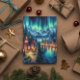 Moonlit Reflections: Night Lake with Houses Postkarte