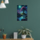 Unter dem wachsamen Blick eines majestätischen Baumes auf einem kleinen Hügel schlängelt sich ein bezaubernder Fluss durch die Landschaft. Jenseits weht aus der Ferne ein mystischer Wald. Der Nachthimmel ist zauberhaft, seine Leinwand wird von einem hellen Halbmond geschmückt, der dieser ruhigen und faszinierenden Szene eine Touch Magie verleiht.