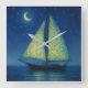Moonlit Sailboat - Pastel Painting Style Night Art Quadratische Wanduhr